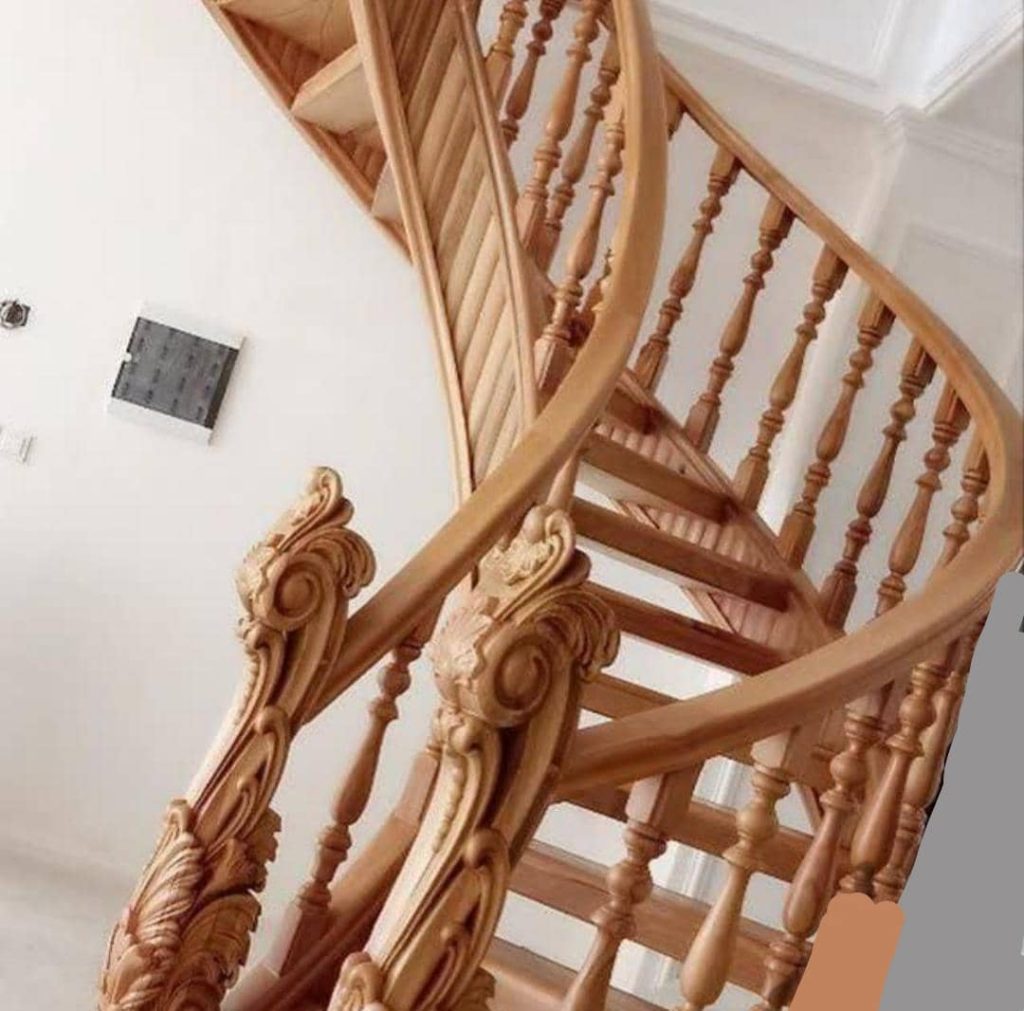 - اجرای صفر تا صد انواع پله گرد چوبی دوبلکسی